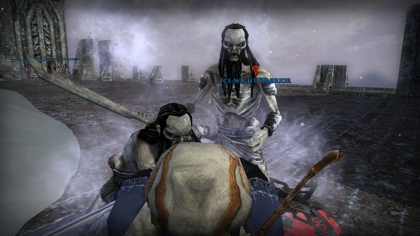 In one of the camps, he gets a quest to defeat some ice wights at a nearby abandoned dwarf keep. He goes to defeat these ice wights, and finishes his quest. He's on his way back to civilization, when he spots his new friends from the Misty Mountains, Floid and Dewitt! Small world. He hangs out with them for a bit before finishing up everything he has left to do in Forochel.
